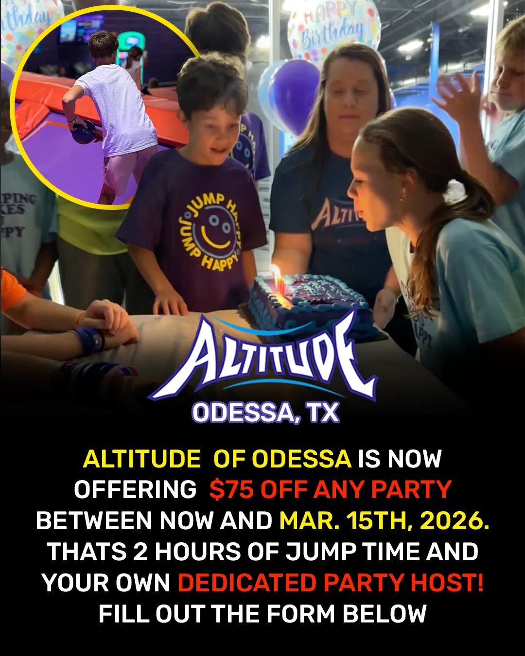 Every Altitude Odessa birthday party includes:
